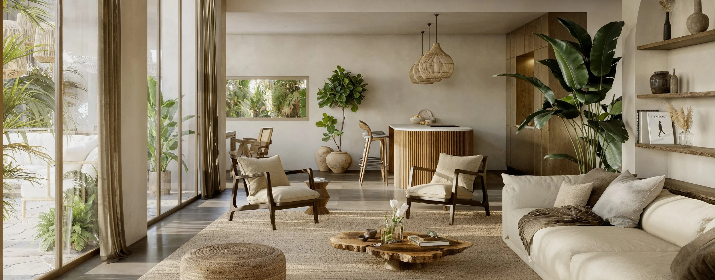 Modern tropical villas with open spaces, natural tones, and layouts tailored for families, couples, or rental guests.