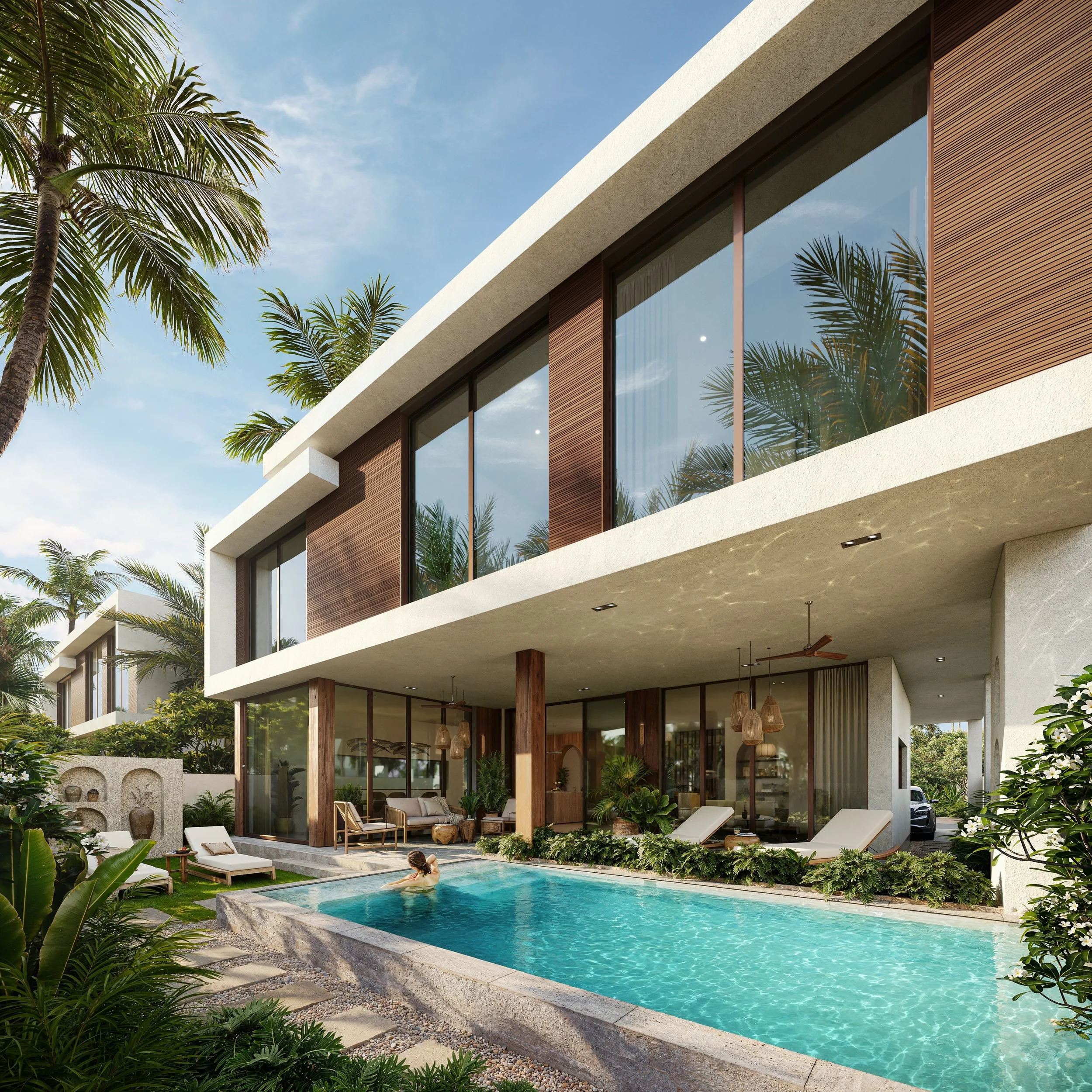 Bright, spacious, and thoughtfully designed for seamless indoor-outdoor living, Villa Tulip offers 243 square metres of refined coastal comfort spread over two levels. The ground floor flows effortlessly from a sleek, modern kitchen into a generous open-plan living area, leading straight to your private pool and lush tropical garden.